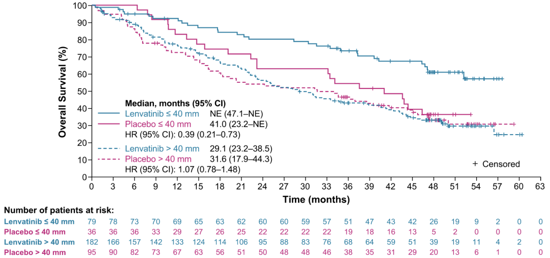 RWD研究的最终分析显示,接受Lenvima治疗的患者中,最佳总缓解率(BOR)为72.4%,完全缓解率(CR)为26.9%、部分缓解率(PR)为45.5%。中位无进展生存期(PFS)为49.0个月(95%CI:37.0-54.2),24个月时估计PFS率为68.2%,48个月时为54.2%。数据截止时未达到总生存期(OS)中位数。24个月时的估计OS率为78.4%,72个月时为57.0%。